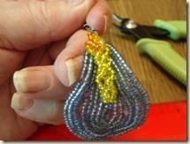 11. Pass the other wire (the one you weaved through the pistil) through the petal and back stitch pistil in place with the wire.